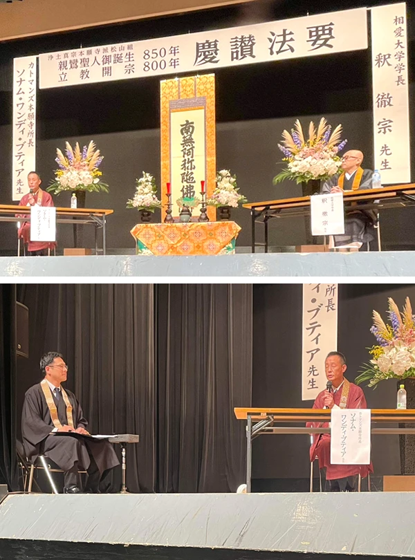 松山市民会館にて行われた「釈徹宗×ソナム・ワンディ・ブティア特別対談・講演会」。